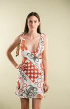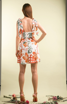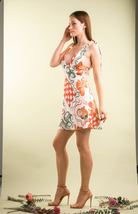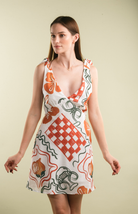 The Wisteria Mist Mini Dress adds a playful touch to your wardrobe with its unique floral and geometric prints. Featuring a flattering V-neckline, adjustable tie straps, and a lightweight fabric, this dress is perfect for warm-weather outings or casual get-togethers.