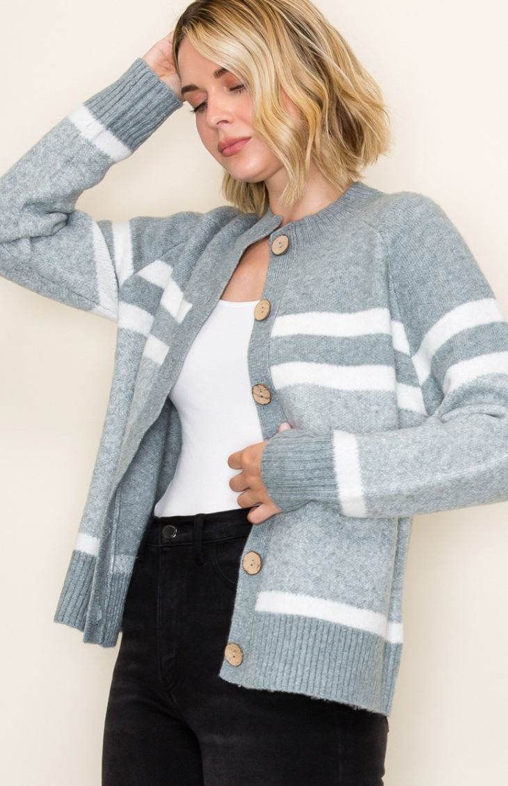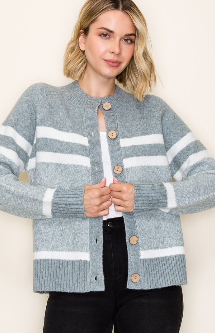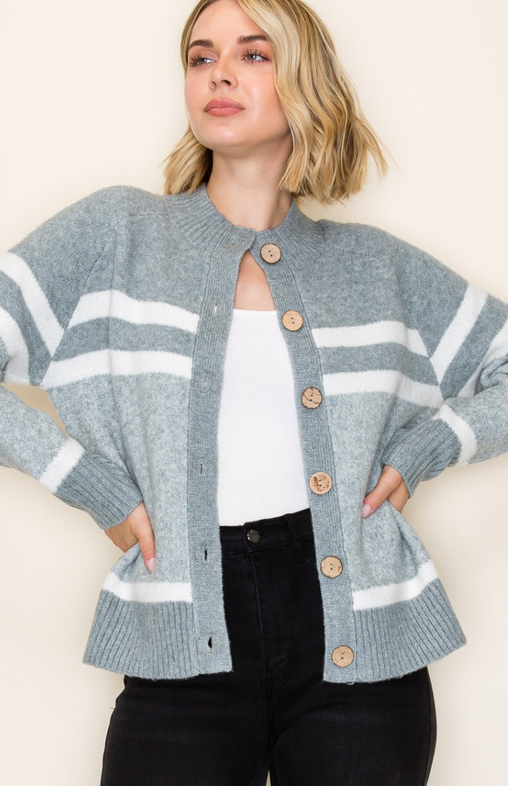Cozy up in timeless style with the Firefly Field Sweater Jacket. Featuring bold horizontal stripes, a classic button-front design, and ribbed detailing at the hem and cuffs, this piece combines comfort with a modern, sporty touch. The soft knit fabric makes it the perfect layering piece for cooler days.