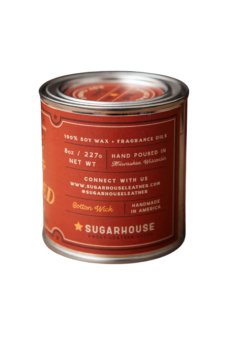 With colorful, vintage, rustic vibes, these hand-crafted candles carry a unique brandy old fashioned scent. Made with 100% all-natural, clean-burning soy wax and fragrance oils in half pint tin with lid and cotton wick.