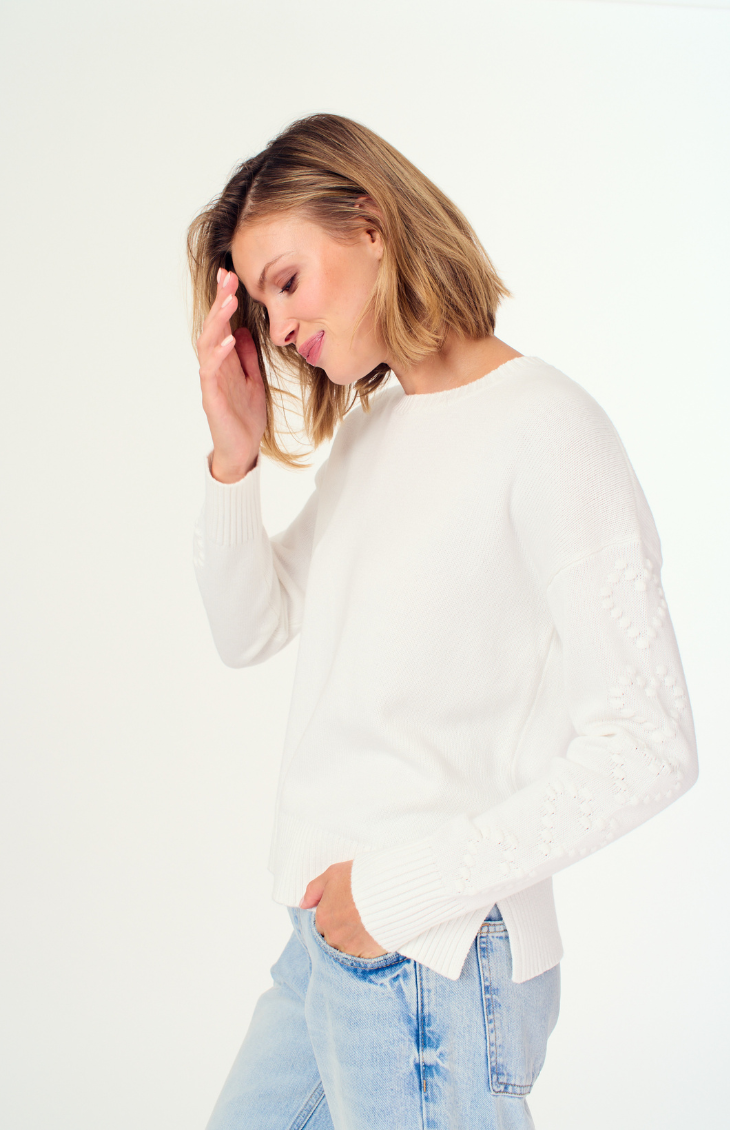 Sweeten up your sweater game with the Intarsia Heart Sleeve Crew. Featuring subtle heart patterns stitched down the sleeves, this cozy knit comes in vibrant candy pink or classic white for versatile styling. Perfect for adding a touch of charm to your everyday look.