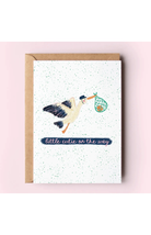 Little Cutie On The Way Stork Orange New Baby Greeting Card
