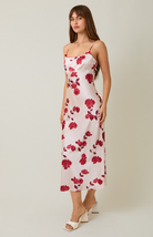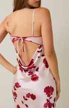 Romantic and eye-catching, the Porchlight Peach Midi Dress features a vibrant rose print on a soft peach backdrop. Designed with delicate spaghetti straps, a flattering square neckline, and a draped open back with tie detail, this dress blends elegance with playful charm. The silky fabric and figure-skimming silhouette make it perfect for both day and evening occasions.