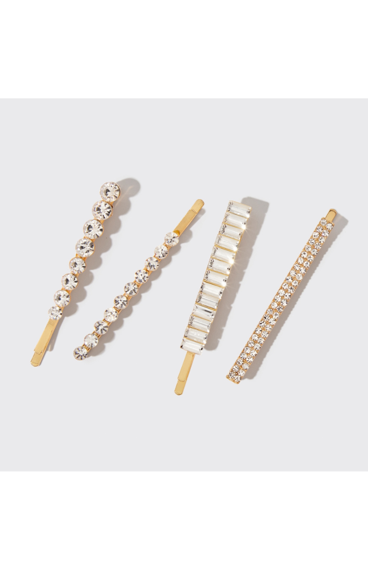 -Accent your hairstyle with dressed-up gem pins featuring a touch of gold to elevate every look