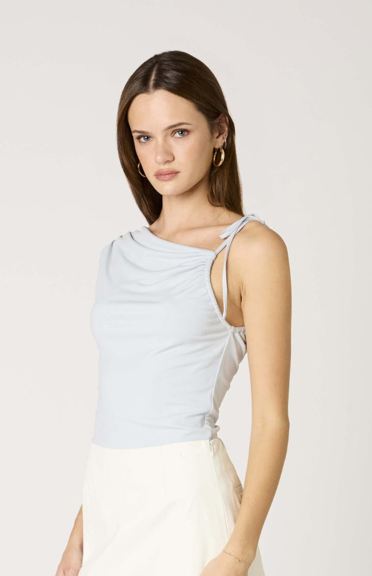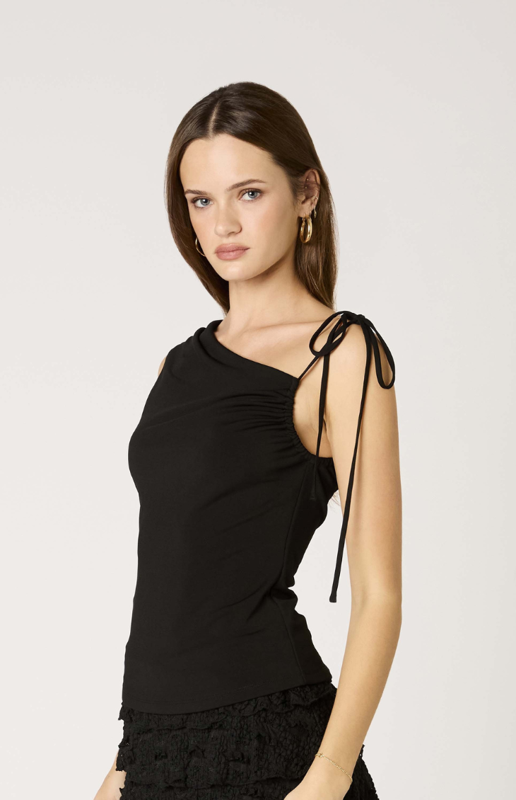 The Roaen Isles Top is a fun going out top with it's asymmetrical silhouette. Made with 5% spandex, the top is comfortable and flattering. The one tie sleeve creates a fun and flirty detail, while the thicker sleeve is elegant and classy.