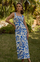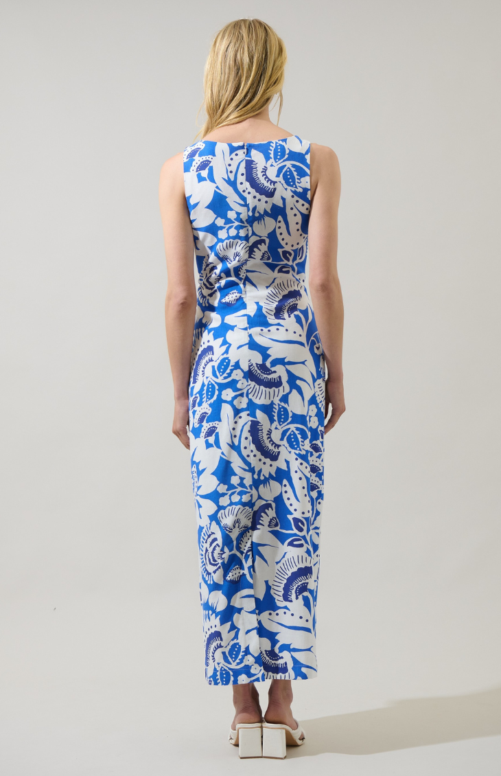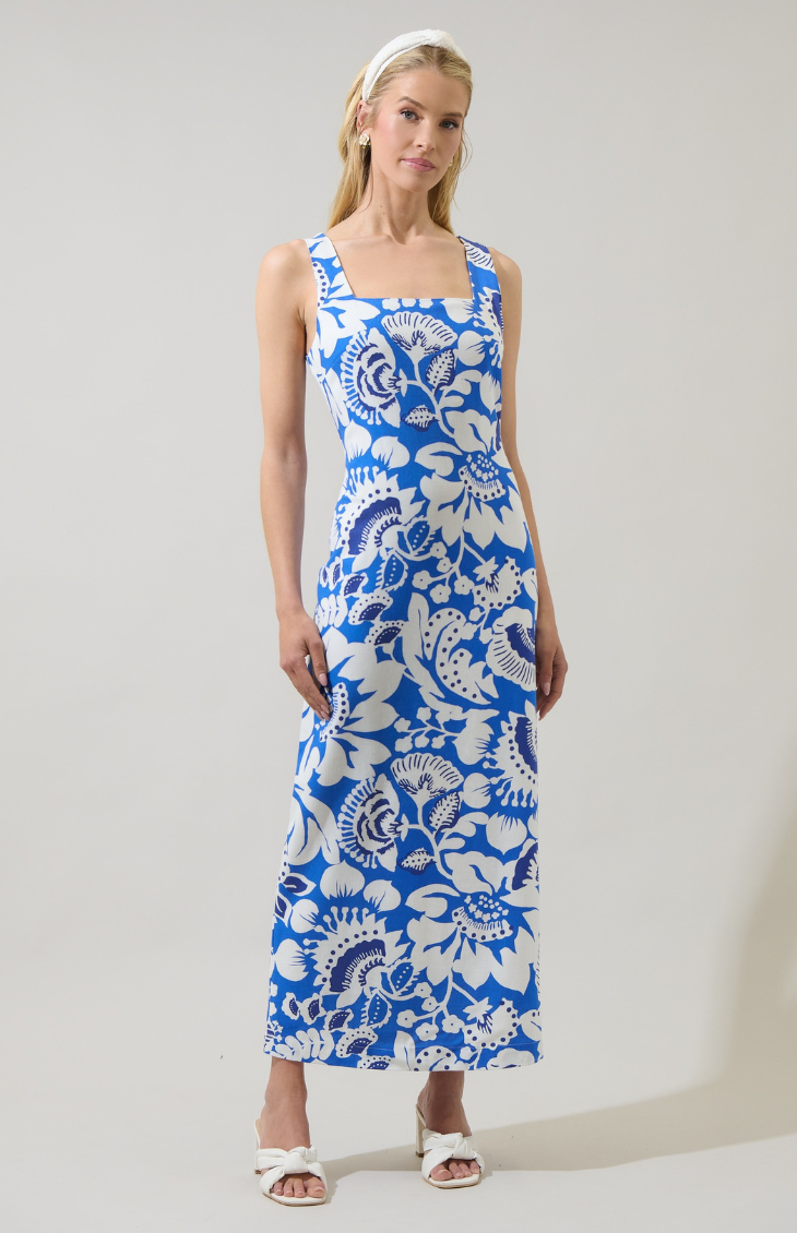 Summer fun meets sophistication in this maxi dress. Designed with a square neckline, structured silhouette, and a sleeveless look. It has an invisible zipper in the back along with a slit. Pair it with white heels and a straw clutch for a warm weather dinner look.