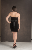Turn heads this season with the Snowlit Nights Mini Dress. Featuring a velvet finish adorned with sparkling bow embellishments, this strapless mini dress is perfect for holiday parties and winter nights out. The satin ribbon belt adds a flattering cinched waist, while the sleek silhouette ensures you stand out in every room.
