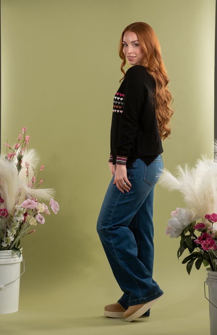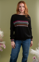 Stay cozy and stylish with the Lovestruck Sweater by Zaket & Plover. Featuring a charming heart pattern and vibrant cuff details, this lightweight knit is perfect for adding a playful touch to your wardrobe.